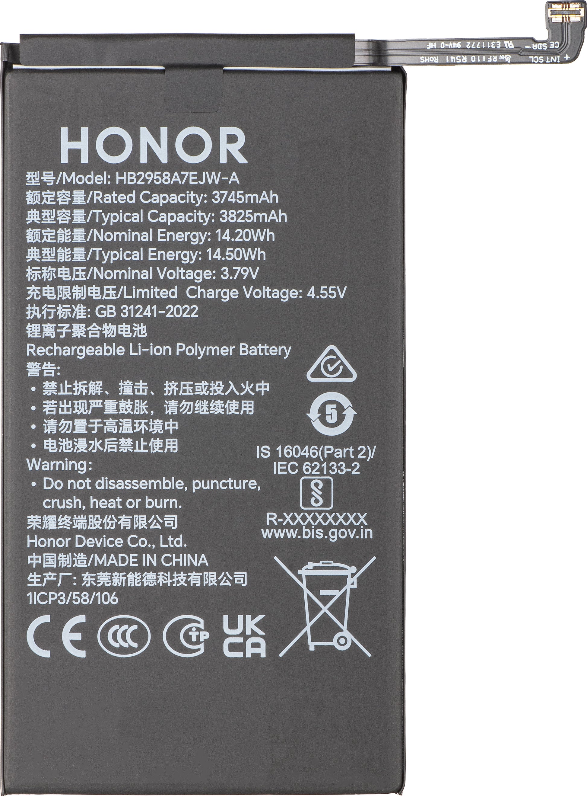 | Model baterije | HB245872EJW-A |