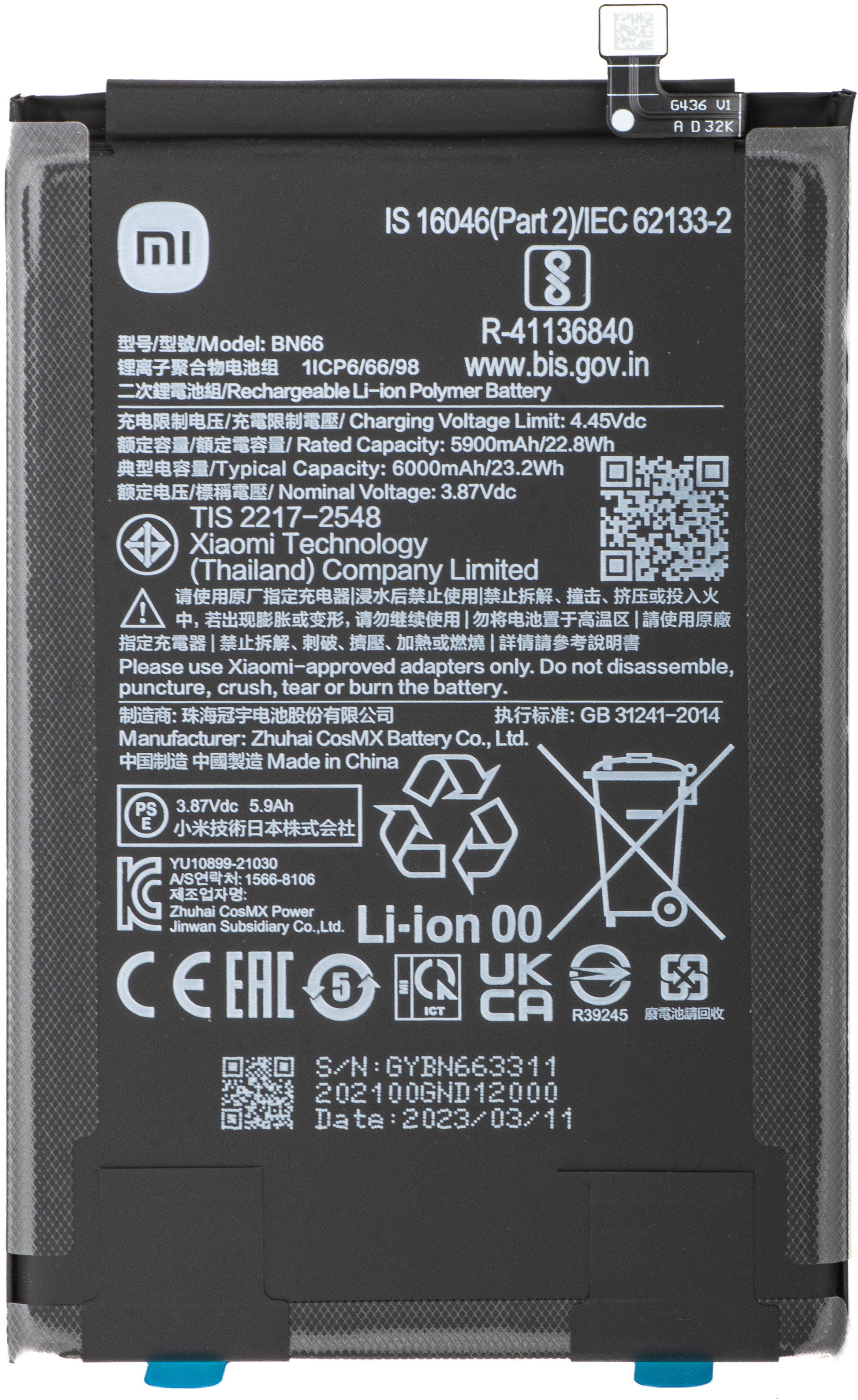 Model baterije | BN66 |