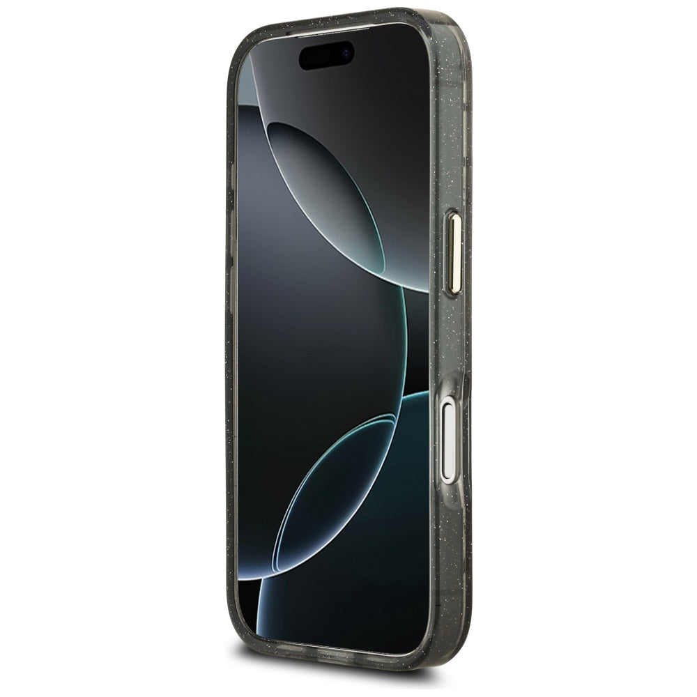 Futrola MagSafe za Apple iPhone 17 Pro, Guess, IML Metal Glitter Flowers Triangle, Crna