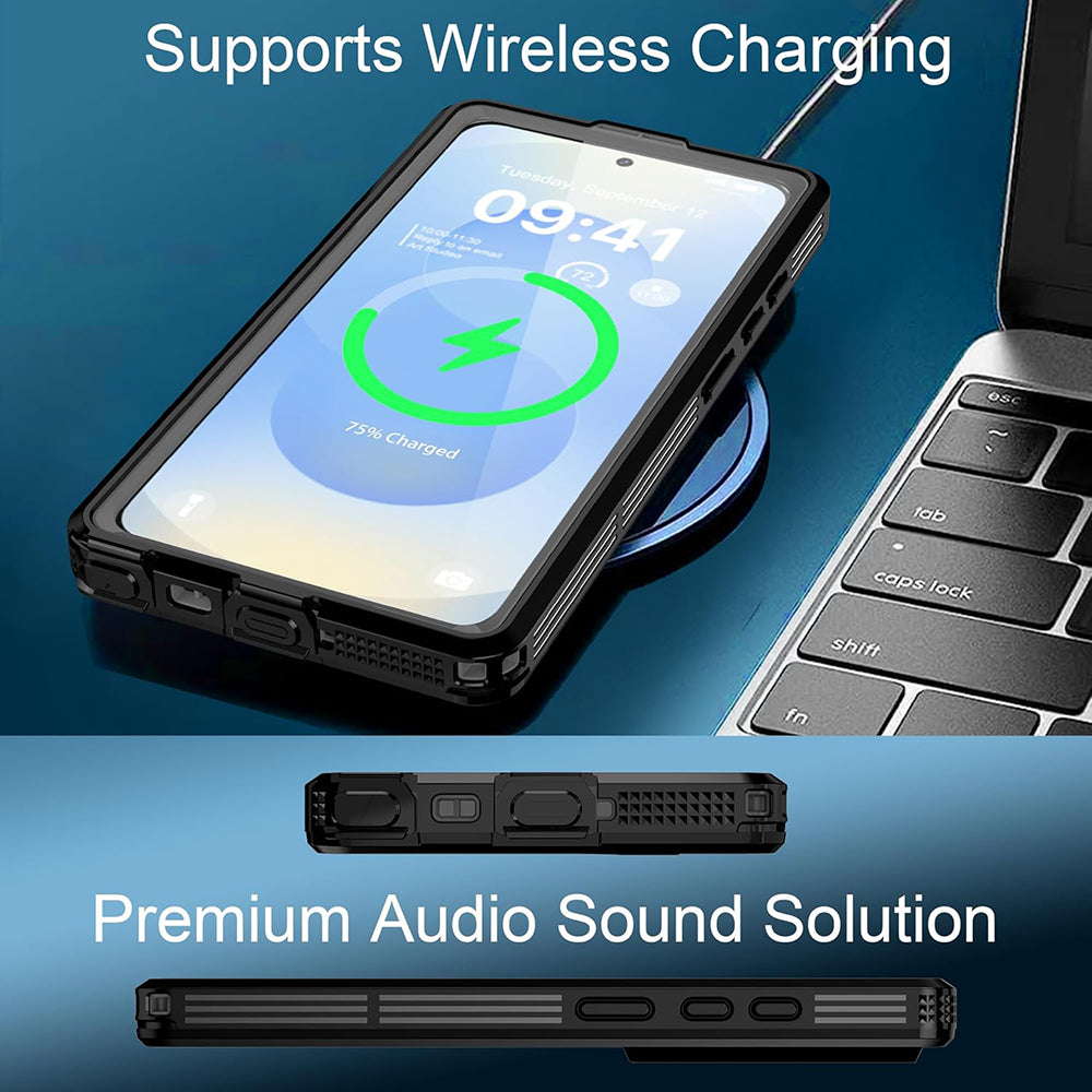 Futrola ima sistem zatvaranja koji je vodootporan i omogućava potapanje telefona u vodu do dubine od 1.5 metara, na 30 minuta.