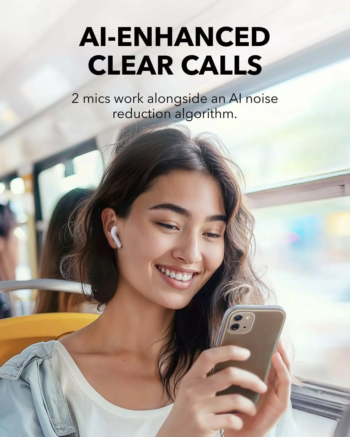 AI tehnologija za smanjenje buke i dvostruki ENC mikrofoni garantuju jasne pozive, čak i u bučnim okruženjima. Putem posvećene aplikacije, korisnici