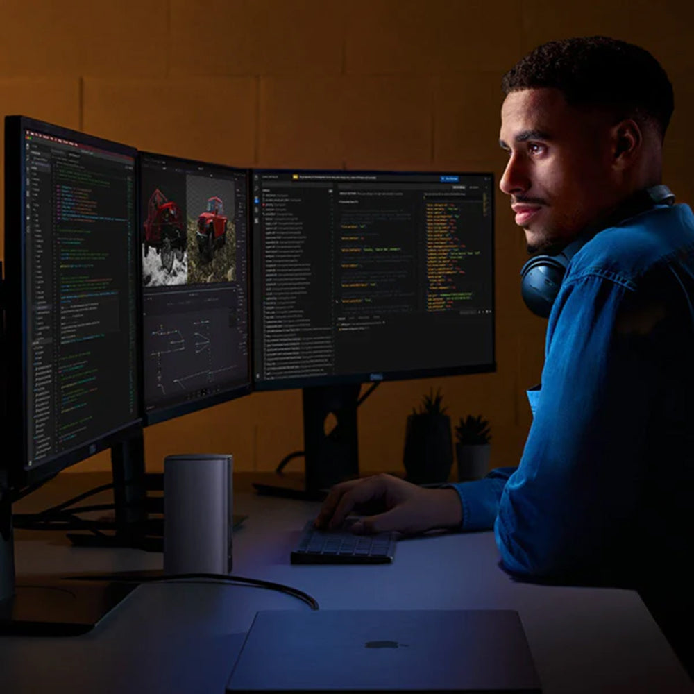 Izrađen od premium aluminijuma, kombinuje eleganciju sa trajnošću. Ima 3 video izlaza (HDMI 2.1 8K, HDMI 2.0 4K, DisplayPort 1.2 4K),