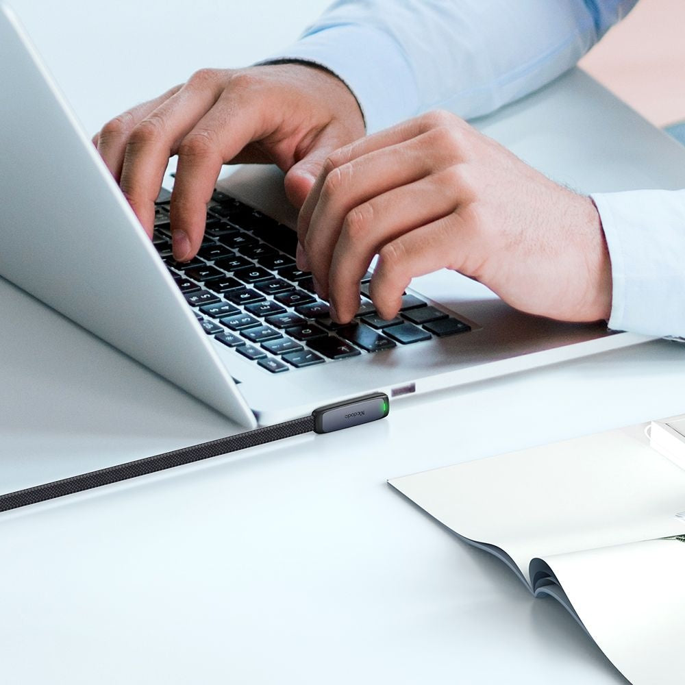Kabl Mcdodo ima konektor pod uglom od 90 stepeni za udobnu upotrebu, dok ravan oblik sprečava zapetljavanje i pruža fleksibilnost i otpornost na savijanje.