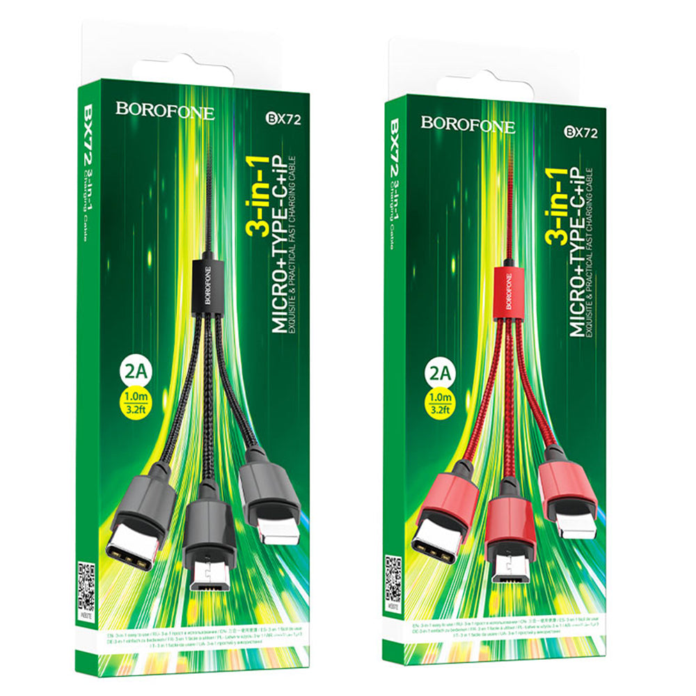 Borofone BX72 je idealan 3-u-1 kabl za korisnike koji imaju više uređaja i žele jednostavno i efikasno rešenje. Opremljen sa tri konektora - USB-C,