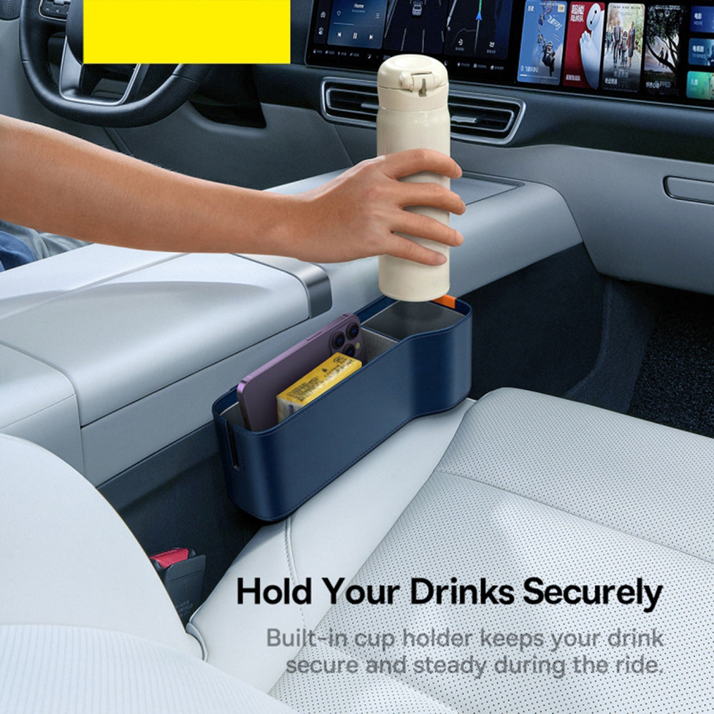 Organizator Baseus OrganizeFun se ističe svojim velikim kapacitetom i podeljen je na dva odeljka koja vam omogućavaju da praktično skladištite razne dodatke. U jednom odeljku možete skladištiti predmete kao što su telefon, ključevi, kartice, upaljač, računi ili futrola za naočare. Drugi odeljak služi kao držač za čaše koji će vaše piće održavati sigurnim i stabilnim tokom vožnje, eliminisajući rizik od prosipanja.