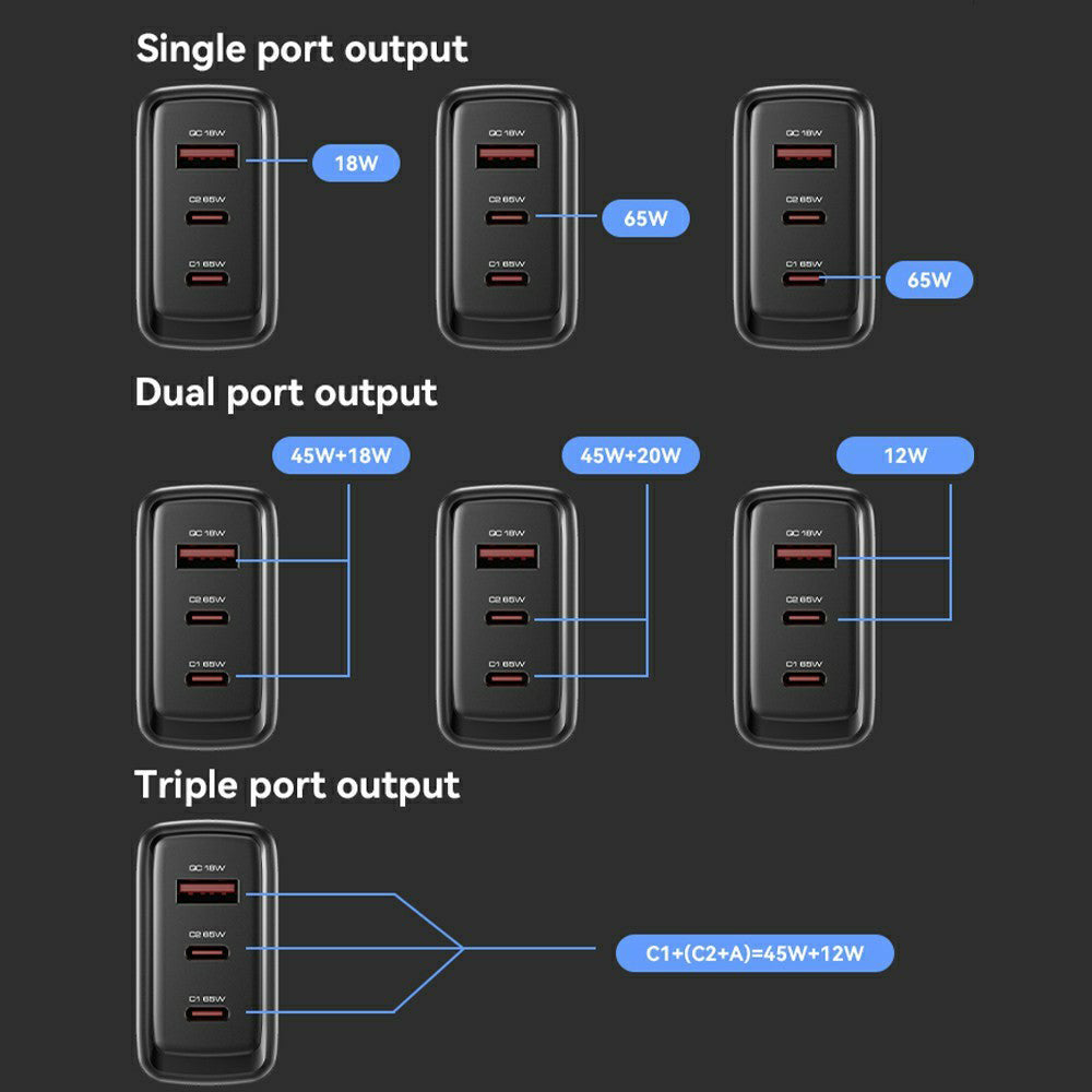 Snaga USB-C1 + (USB-C2 + USB-A): 45W + 12W;