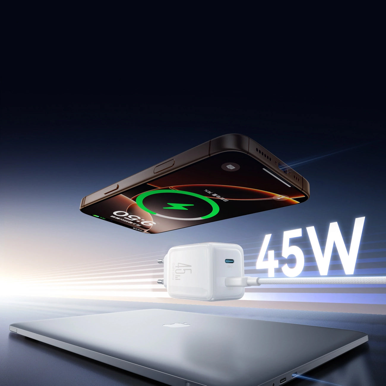 Može napuniti laptop do 45W i dva telefona istovremeno na 30W + 15W, automatski se prilagođavajući specifikacijama svakog uređaja preko