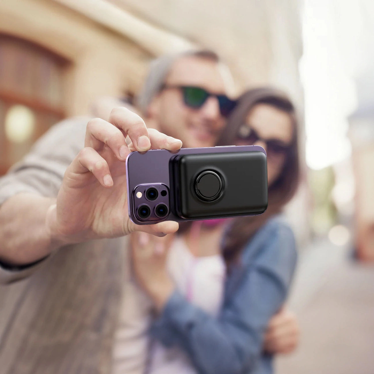 Ovo 2-u-1 rešenje kombinuje efikasnost spoljne baterije od 10.000 mAh sa funkcionalnošću ergonomskog nosača za telefon,
